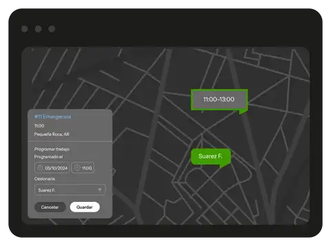 Toda la información sobre la ubicación actual de sus trabajadores se guarda incluso cuando actualizan el estado del trabajo. Siempre podrá determinar la hora y el lugar exactos en los que sus empleados empiezan o terminan sus trabajos. Además, haz un seguimiento de su ubicación en tiempo real cuando estén de camino a las instalaciones del cliente.