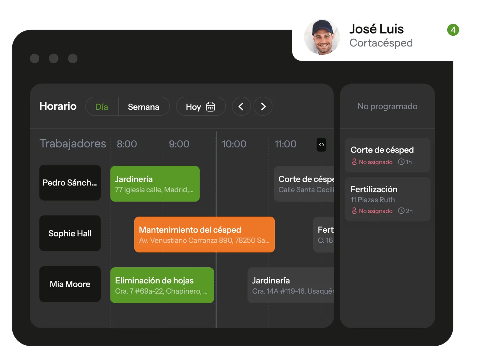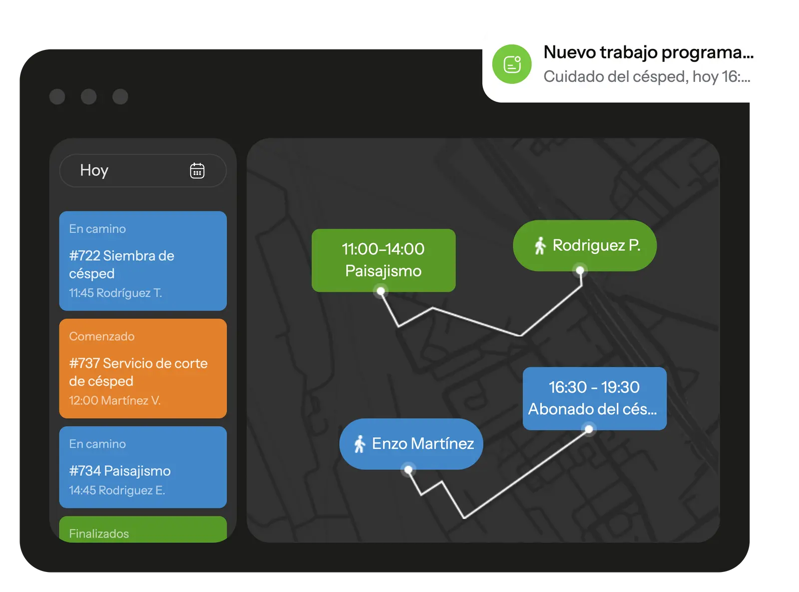 En la aplicación móvil, sus empleados ven todas las tareas programadas y reciben notificaciones sobre nuevas asignaciones.