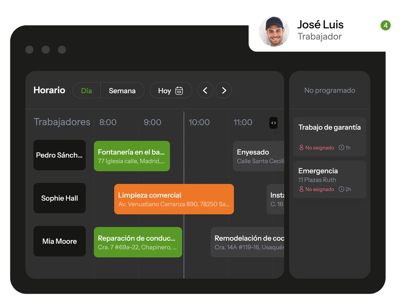 En la aplicación móvil, sus empleados ven todas las tareas programadas y reciben notificaciones sobre nuevas asignaciones.