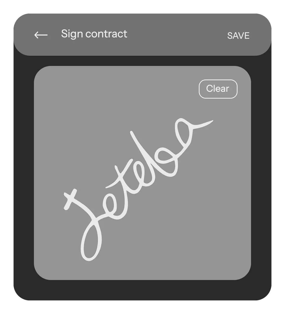 Upon job completion, a client can sign a document or certificate directly on the smartphone screen. The signed document will be automatically saved and then forwarded to the client by email.