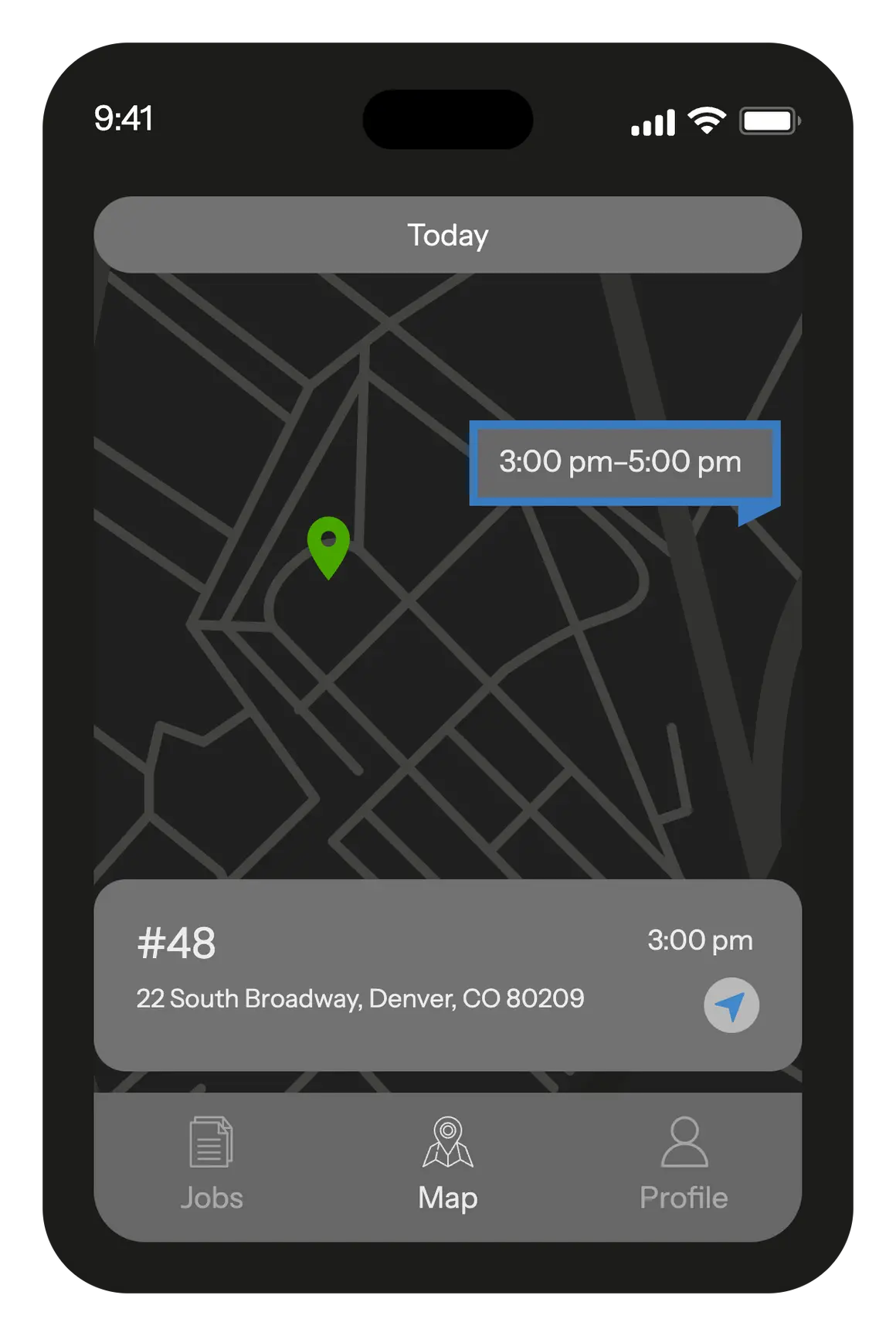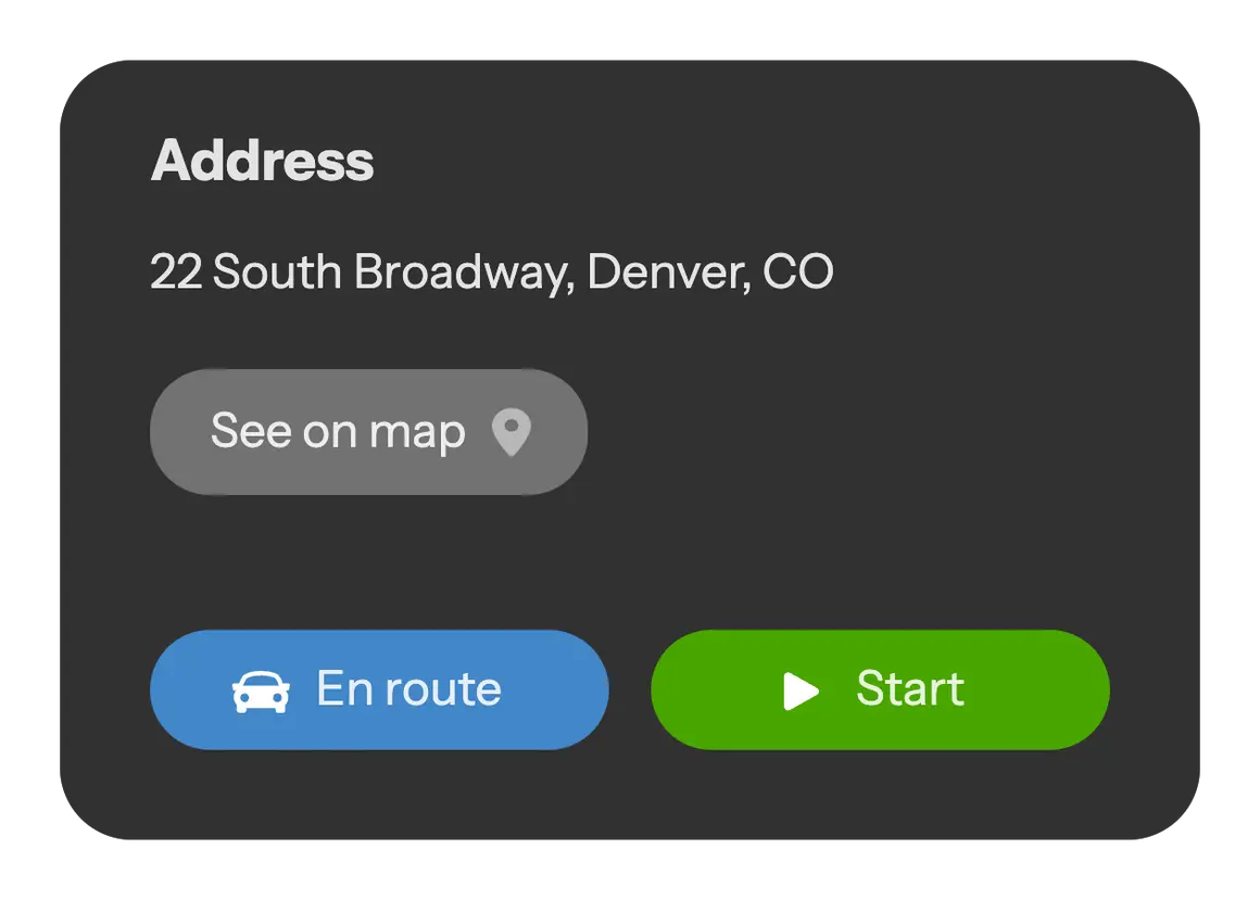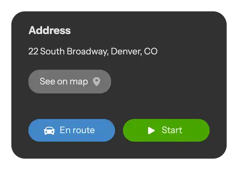 Access the map directly through your mobile app. There's no need to enter your client's address manually. Simply tap the icon adjacent to the address to generate a route from your current location to the client’s location. The app offers the most efficient route, taking traffic conditions into consideration.