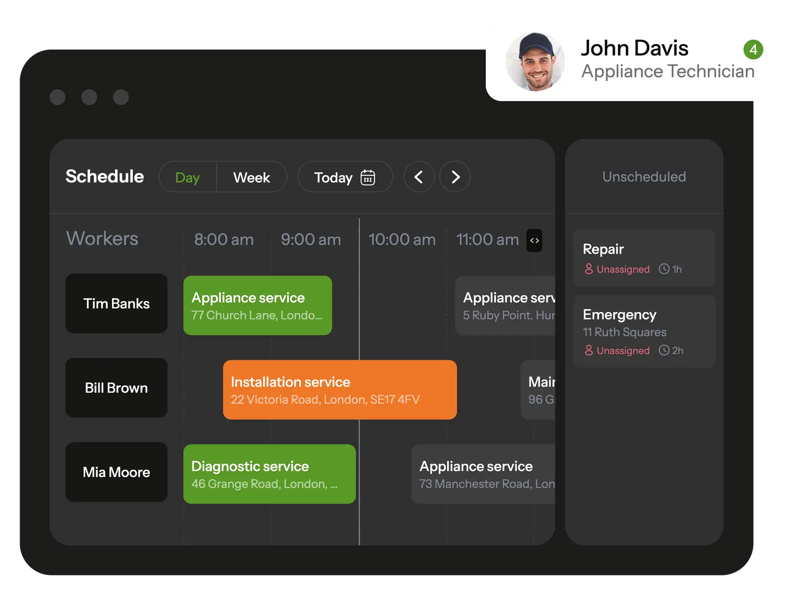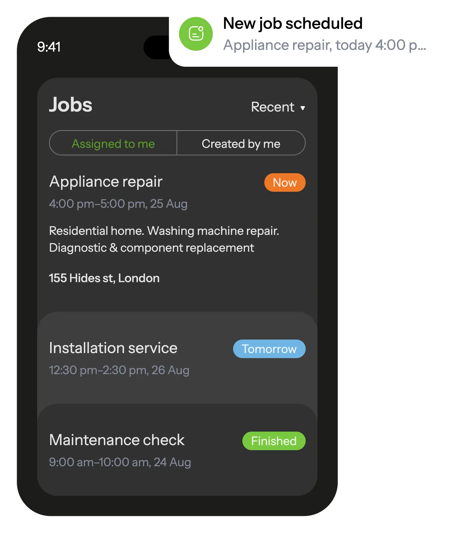 In the mobile app, your handyman see all scheduled tasks and receive notifications about new assignments.