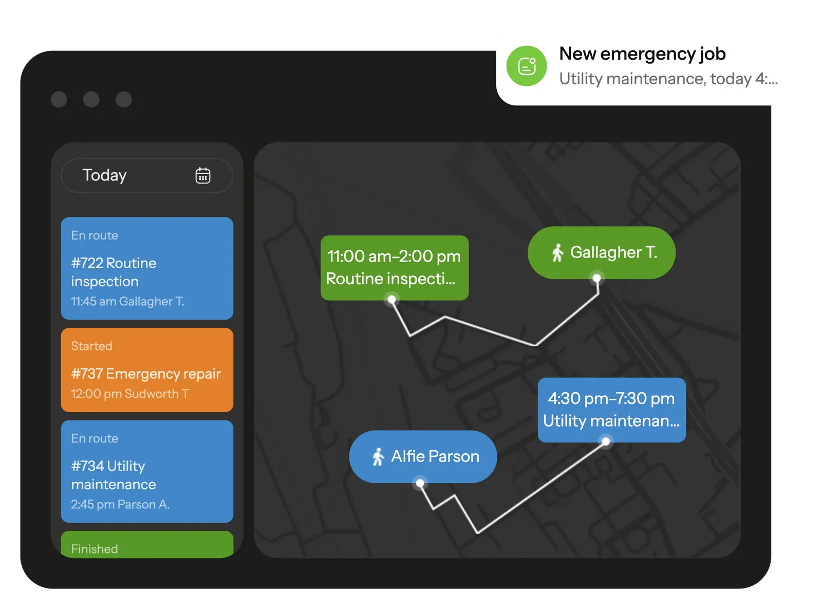 GPS location tracking helps calculate mileage and assign the closest worker to an urgent job.