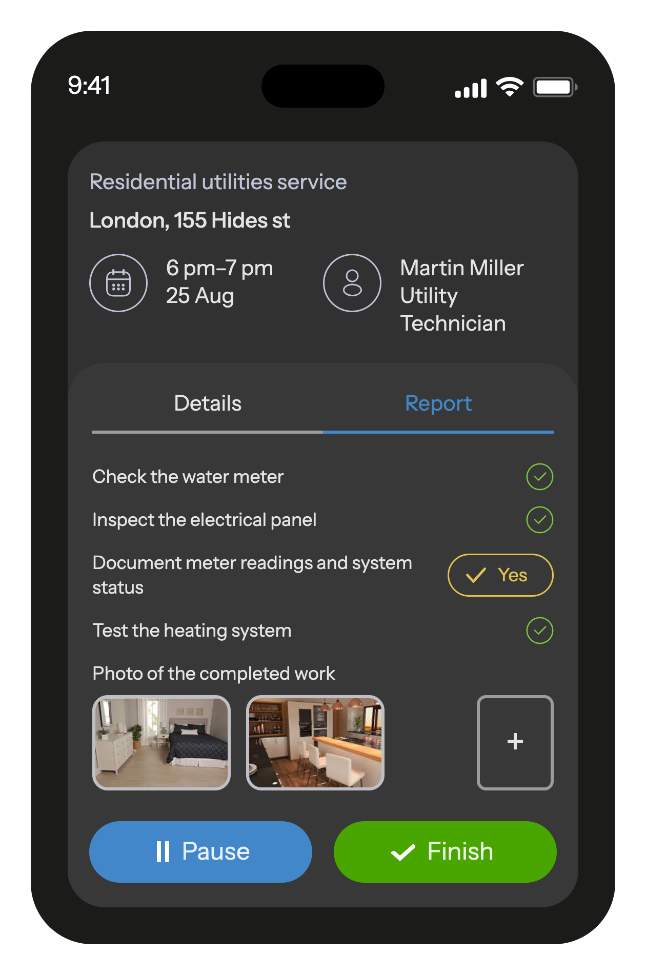 Сreate workflows for inspections, preventive maintenance, repairs, tenant requests, and seasonal tasks with mandatory steps and photo proof.