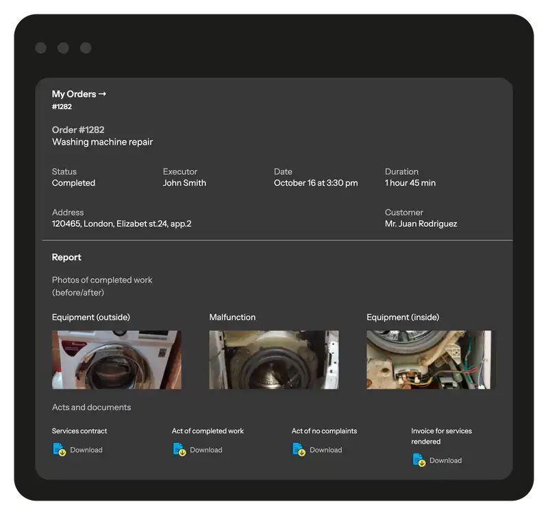 Give your clients access to a branded portal with detailed information on their requests, job progress, and photo reports.