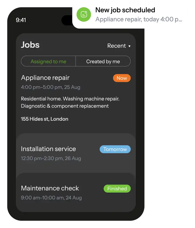 In the mobile app, your workers see all scheduled tasks and receive notifications about new assignments.