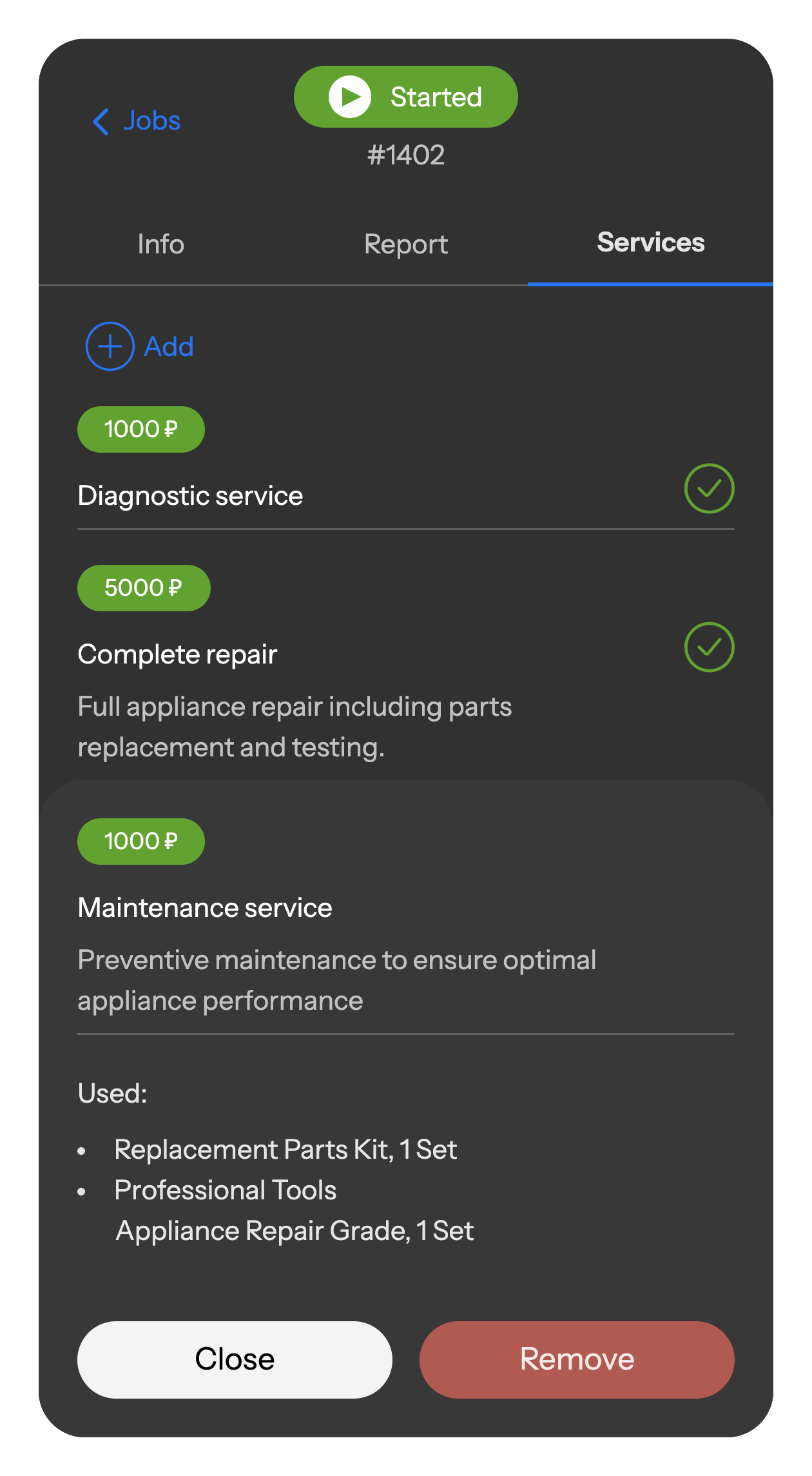 When worker starts the job, he will receive a checklist with the list of actions so he doesn't forget anything to do.