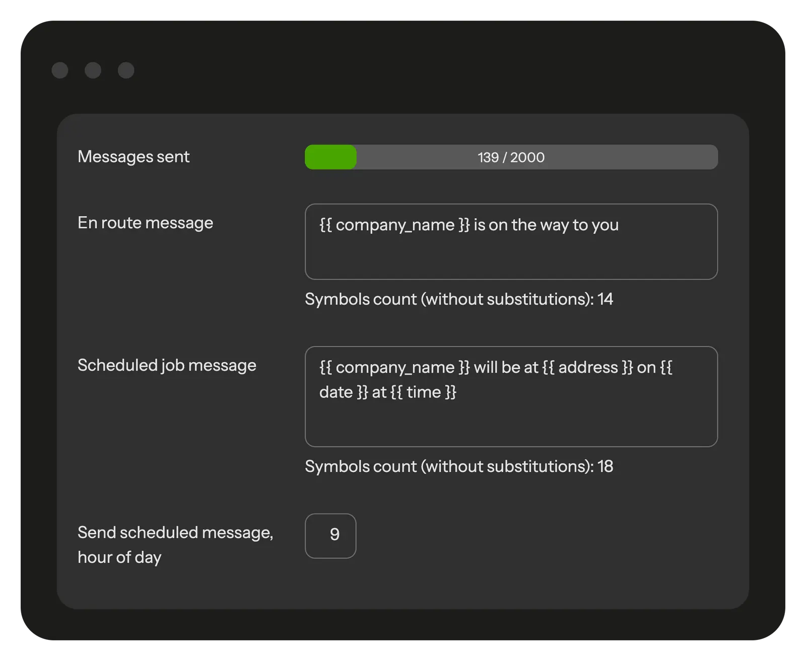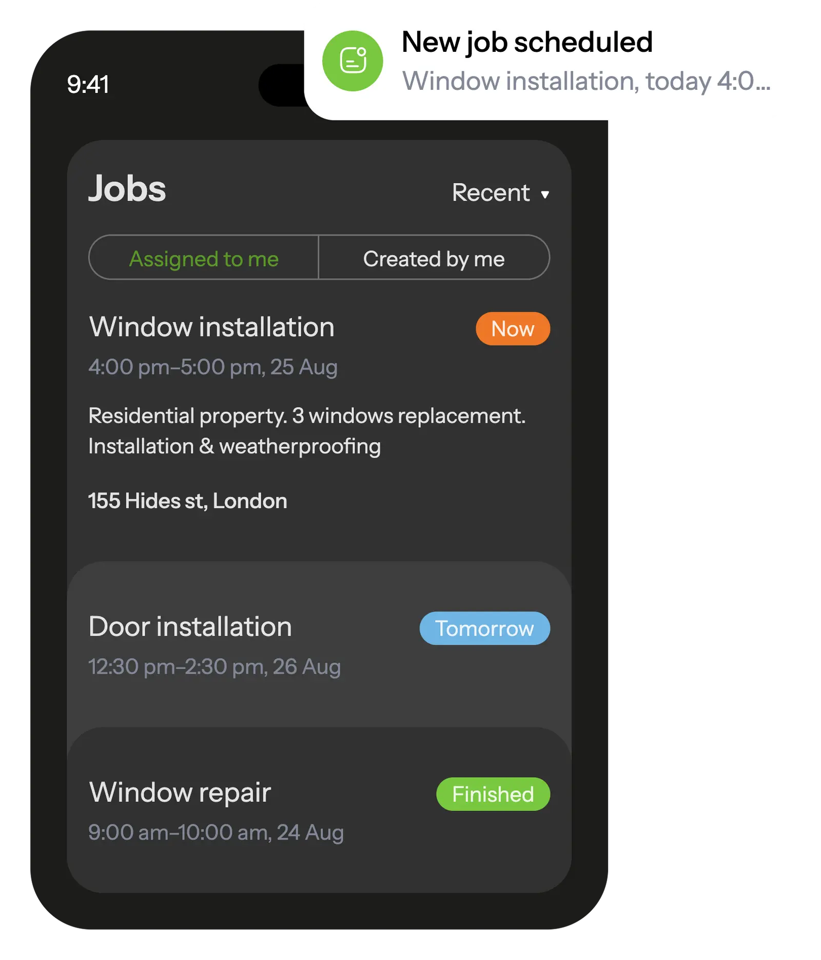 Keep clients updated with SMS on measurements, scheduling, and job completion.