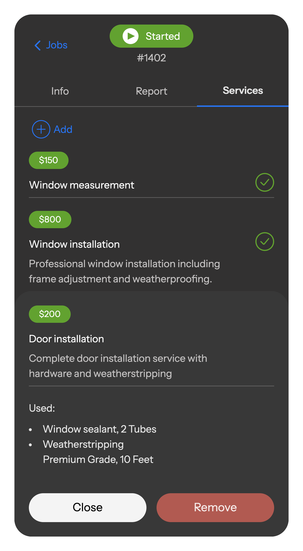 Set steps and fields for any job, from measurements to finishing and hardware installation.
